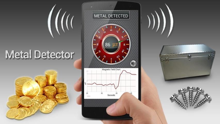 Turns your cell phone into a real metal detector Detect precious metals using your own phone anywhere anytime. Earth's Magnetic Field ranges from 30 to 60 µT. Any Other measurement is an indication of unusual metal activity.