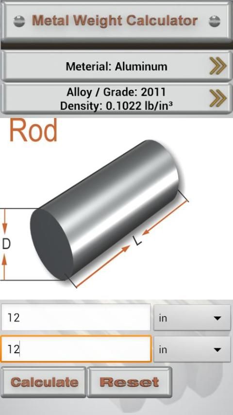 Металлический калькулятор позволяет рассчитать приблизительный вес и длину.
