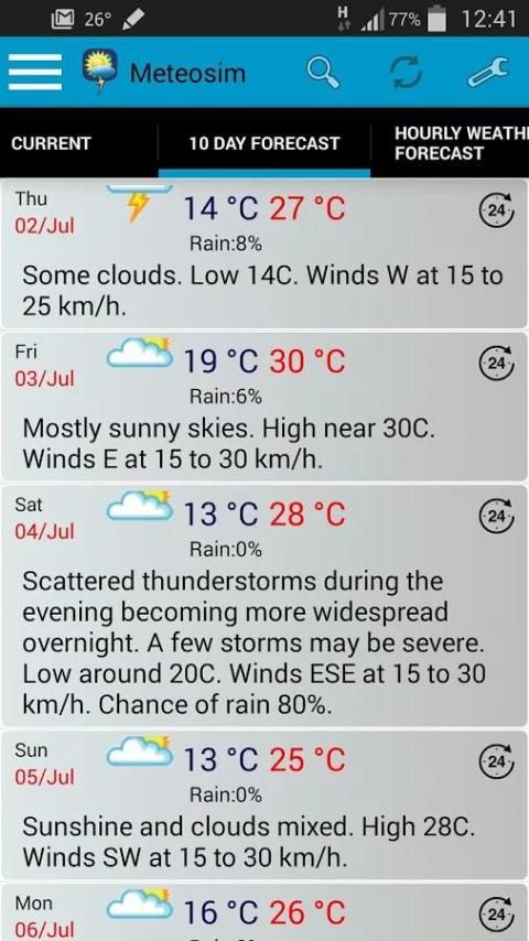 Погодное приложение Meteosim для «Андроид»: