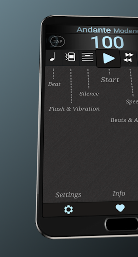 - визуальное отображение темпа (цветовые вспышки), а также вибро