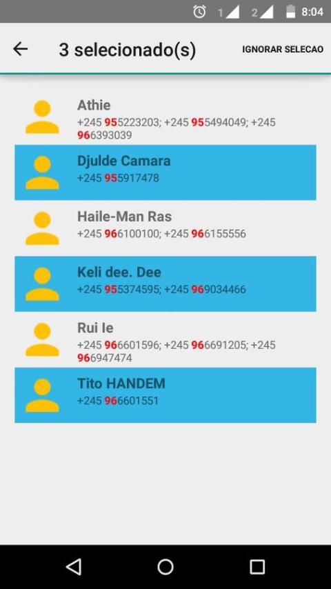 Básicamente, o aplicativo procura seus números nacionais, com prefixo +245 ou 00245, ou sem prefixo, e depois adiciona 96, 95, 97 e 44 para as redes MTN, Orange, Guinetel e Guiné-Telecom, respectivamente.