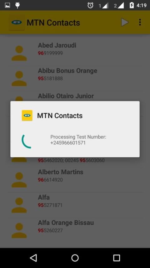 É importante notar que o aplicativo não toca nenhum número que não seja um número MTN, Orange, Guinetel ou Guine-Telecom.