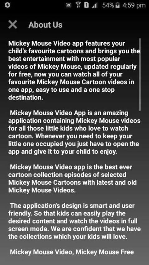 Микки Маус Video App это удивительное приложение, содержащее видео Микки Мауса для всех тех маленьких детей, которые любят смотреть мультфильм. Всякий раз, когда вам нужно держать ваш малыш занят вам просто нужно открыть приложение и дать его к вашему ребенку, чтобы наслаждаться.