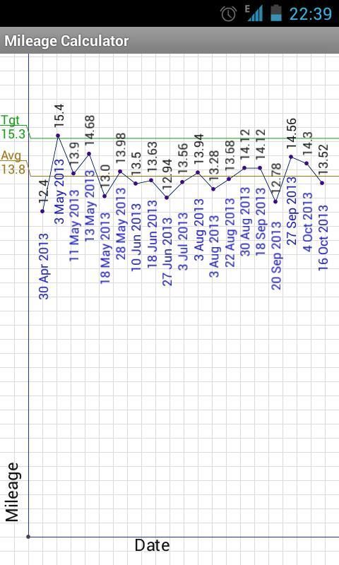 Есть функции, чтобы сохранить вычисленные значения с датой. Вы также можете проверить сохраненные значения пробег на простой линейный график. Это приложение также отображает последние значения проверяются во время своей работы в следующий раз.