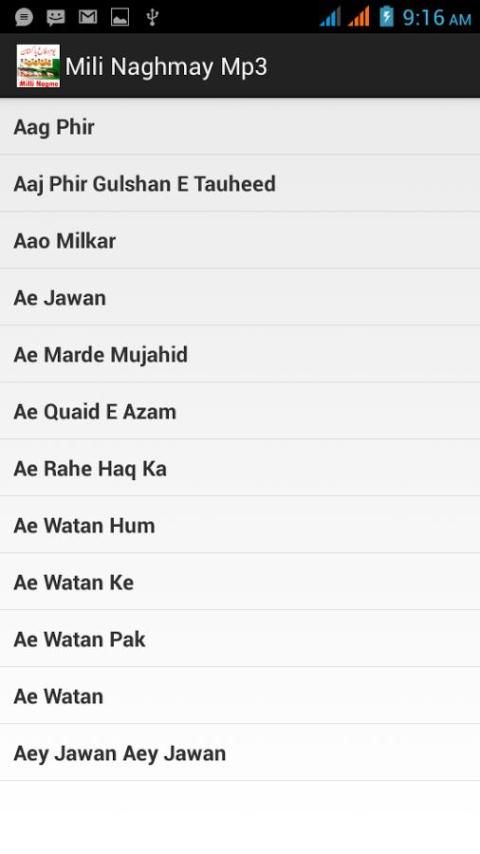 LIST of common mili naghmay:-