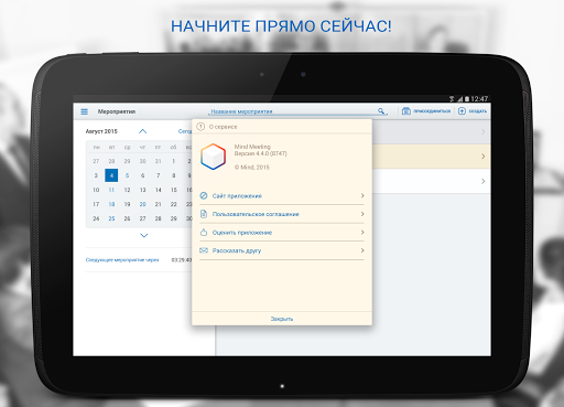 Mind Meeting Бизнес расширяет возможности приложения Mind Meeting для планирования видеоконференций и вебинаров с планшета или мобильного телефона.