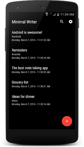 Минимальный писатель - это простое и элегантное приложение, которое позволяет вам поделиться, поискать, резервное копирование и восстановление ваших заметков.