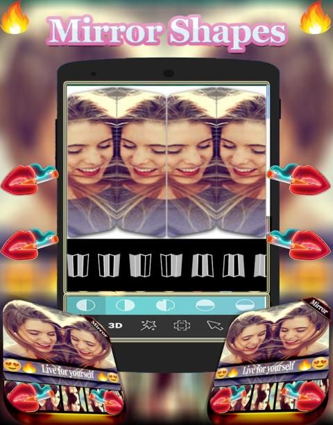 Зеркальное отражение создавать различные выделяющийся зеркалу отражения фотоэффекта, что на самом деле сделать ваши фотографии выделиться из толпы. Так друзья получают различный и быстрый взгляд в зеркале на этом лучшем приложении отражения зеркала фото.