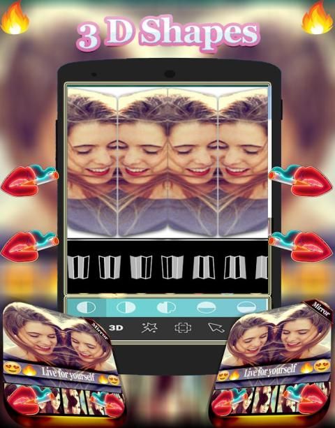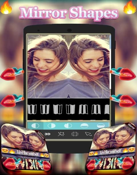 Вы для создания 3D Mirror Фото и коллаж Фото. Он имеет удивительный 3D отличается зеркальным эффект для создания зеркала Фото- и имеет более чем 20+ различных рамок для создания коллажей Фото.