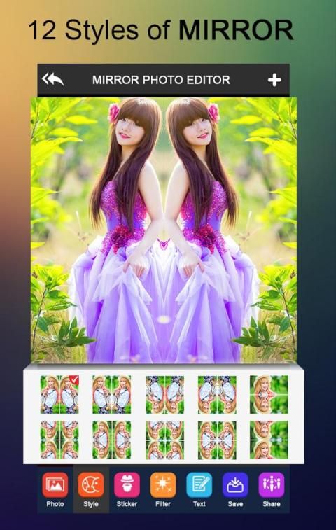 Зеркало Photo Editor может помочь вам создать зеркальное изображение или зеркальное изображение как можно скорее, и предоставить десятков шаблон зеркало, вы увидите забавный клон эффект, который вы можете думать!