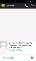 Don't miss out...send yourself a message instead! Similar to Google Voice, this app will send you a message if you miss a phone call. This is very helpful when you are not near your phone and miss a phone call. This app is extremely customizable with many options to suit your needs and style. Updates and new features are frequent. Features include: When you miss a phone call you can send a message to: • SMS • Email (Pro version only) • Google Voice SMS (Pro version only) • Auto Reply via SMS (Pro version only) Customizable features: • Custom message options (Pro version only) • Customization options for individual contacts (Pro version only) • and much more... Region features: • Supported in multiple languages • Region specific display options Please email us at missedcallmessenger@gmail.com with your questions, comments or concerns. Visit Me Google+: https://plus.google.com/110716578619005098807 Facebook: http://www.facebook.com/MissedCallMessenger Twitter: https://twitter.com/MissedCallMess