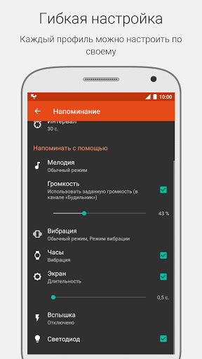 ★ Настраиваемое расписание напоминаний: произвольный порядок напоминаний, настройка длительности и количества напоминаний.
