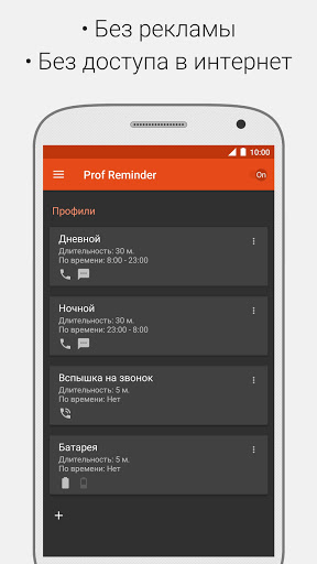 ★ Напоминание с помощью: мелодии, вибрации, включения экрана, вспышки камеры (поддерживаются не все устройства), светодиодного индикатора.