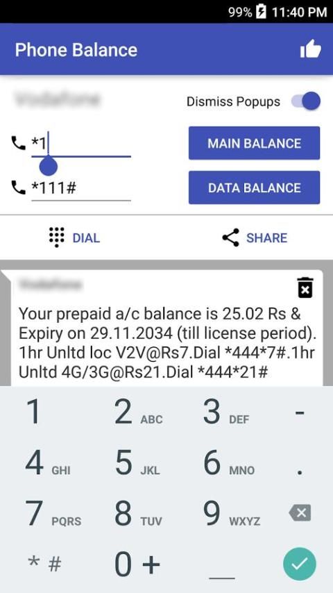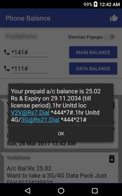 Если вы используете «набор» кнопку формируют наше приложение, чтобы сделать ваши обычные вызовы, то всплывающие сообщения после вызова, которые имеют информацию о стоимости вызова и баланс будут захвачены и хранятся в приложении. Эти сообщения затем могут быть просмотрены в любое время для баланса или вызова стоимости. Приложение также может закрыть (отклонить) эти всплывающие окна автоматически для пользователей, которые находят их раздражают.