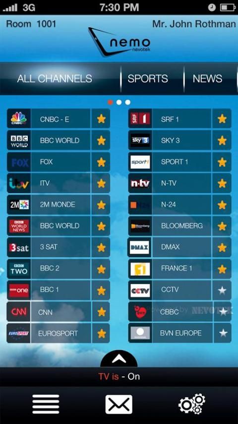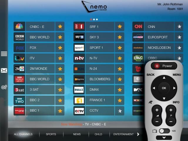 - Check the TV channels and control in-room hotel TV eliminating need for TV remote control