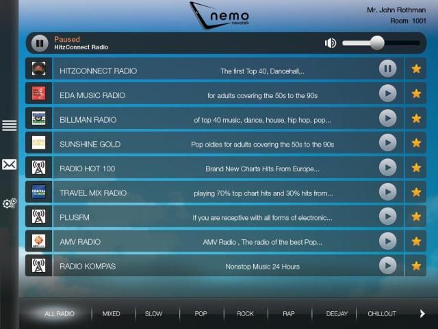 - Tune in to a radio channel of choice from the online radio list provided by the hotel