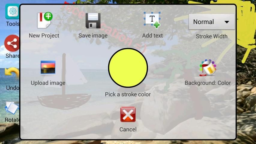Вы можете выбрать свои собственные изображения с галерею и установить их в качестве фона в Mobile Paint.