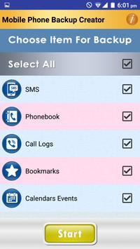 * Backup to internal mobile phone memory or to SD card of your cell phone
