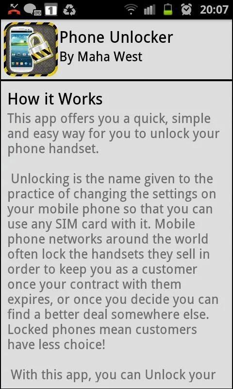 ** Обратите внимание, ваш телефон не разблокирован только путем установки приложения! Чтобы разблокировать телефон вам нужно следовать инструкциям в приложении **