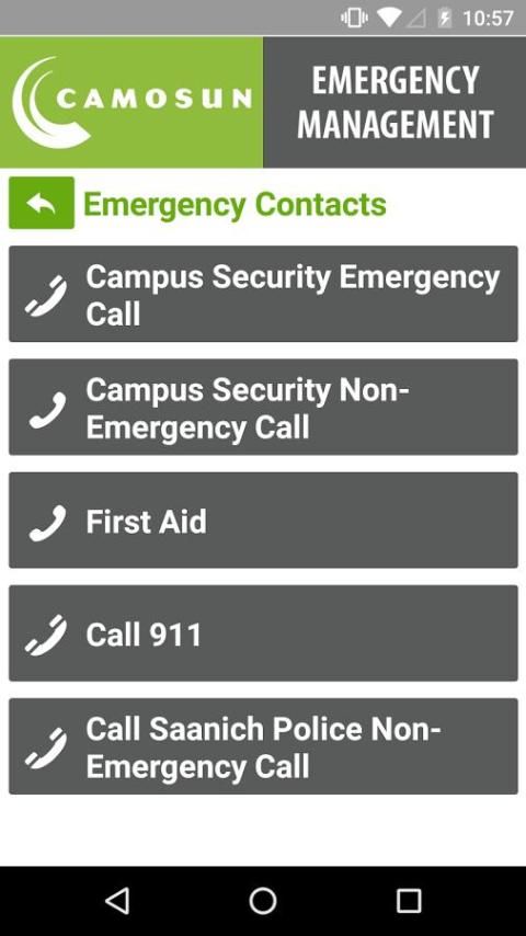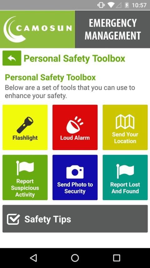Мобильная Безопасность приложение разработано для студентов Camosun колледжа Департаментом по чрезвычайным ситуациям. Особенности приложения включают в себя быстрый доступ к услугам охрана, средства индивидуальной защиты инструментов, карты кампуса, ресурсы поддержки на кампусе, и многое другое!