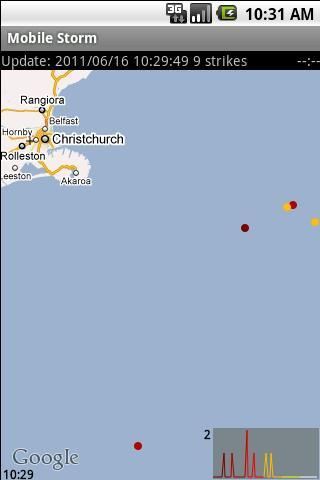 Отображает расположение ударов молнии на карте Google, используя StormVue (ТМ) файл данных, полученный при применении NexStorm (ТМ) от Astrogenic Systems.