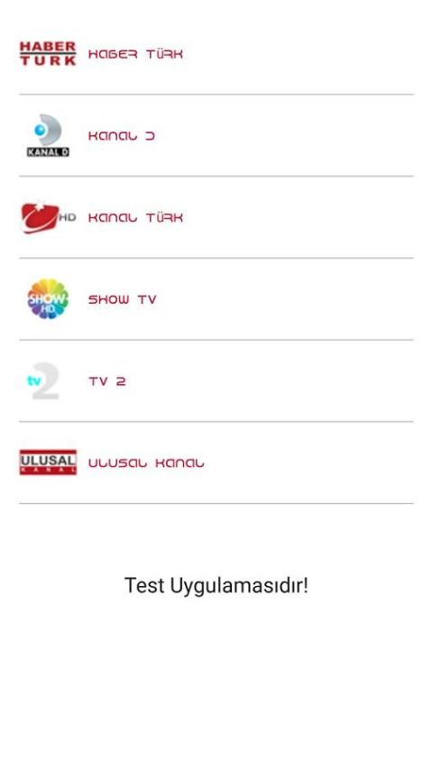 Haber Türk, Kanal D, Kanal Türk, Show Tv, TV 2 ve Ulusal Kanal Türk televizyon kanallarının yayınlarını gösteren test uygulamasıdır. Dilerseniz mevcut yayınları reklamsız uygulamadan izleyebilirsiniz.