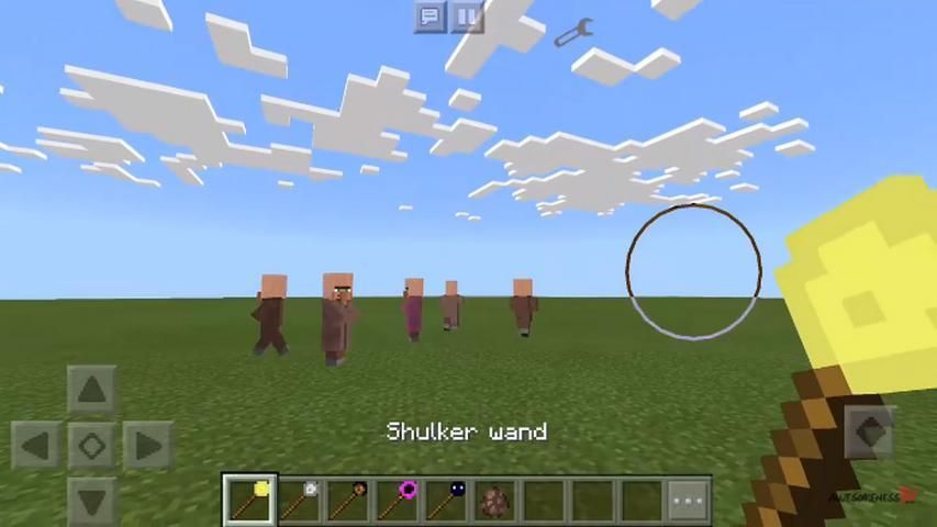 Толпы Персонал для Minecraft PE добавляет 7 новых штатов к вашей игре. Каждый из них является уникальным. Например, огненный шар персонал может сжечь врагов ваших, скелет персонал будет атаковать мобов со стрелками. Вы можете легко получить их и использовать.