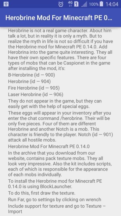 Чтобы установить мод Herobrine для Minecraft PE 0.14.0 использует BlockLauncher.