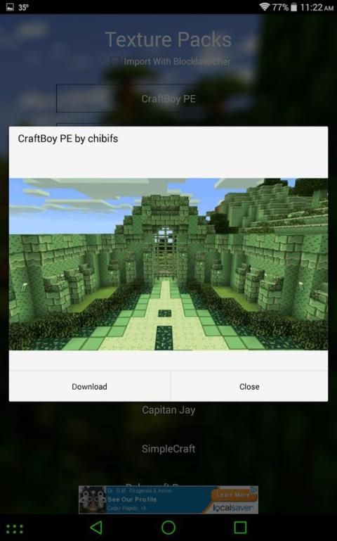 С помощью этого приложения вы сможете получить свой любимый пользовательский контент MCPE все по щелчку кнопки! Это приложение поддерживает последние версии MCPE и часто обновляется с новыми модами, так что вы всегда будете пробовать новые вещи! Одним из ключевых особенностей этого приложения является то, что он показывает вам, что вы скачиваете, прежде чем вы его получите. Например, при загрузке мод он скажет вам, что модники делает и как его использовать. При загрузке карты на экран будет выведено изображение карты, так что вы можете видеть его перед его. Я надеюсь, что вы все понравится это приложение!