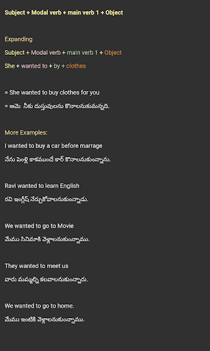 • Примеры на английском языке для Telugu для лучшего понять.Глаголы помогают выучить говорить на английском языке.