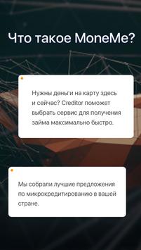 Приложение MoneMe - собрало в себе лучшие сервисы, которые проверены временем и тысячами клиентов. Выбирайте наиболее подходящие условия для вас и переходите на сайт для оформления заявки.