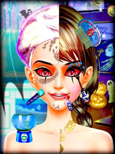 Хэллоуин идет вверх. Играть с нашей Хэллоуиной девушкой и имеет самый авантюрный Хэллоуин макияж весело. Эта девушка нуждается в макияже для вечеринки на Хэллоуин. Можете ли вы помочь ей? Стать профессиональным салон визажист. Дайте Хэллоуин девушке новый страшный вид с тонной страшных предметов косметики. Прежде всего, вы можете сделать сп для чистой кожи. Затем, вы можете взять ее для макияжа и выбрать прическу, тени для век, ресниц, губная помада, брови, ожерелья и многое другое. Следующий помочь ей выбрать уникальный костюм, тон кожи, перчатки, чулки, обувь и аксессуары совпавшего Хэллоуина.