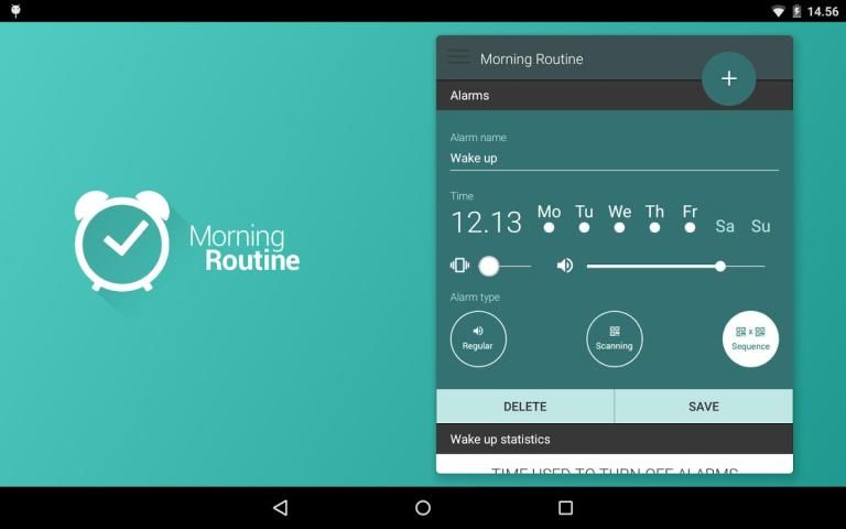 Вы можете установить будильник требовать штрих-сканирование, чтобы выключить, или просто классический нажмите на кнопку, а затем добавить шаг для тревоги, чтобы открыть приложение или веб-сайт, чтобы облегчить вам в день с музыкой или новостями.