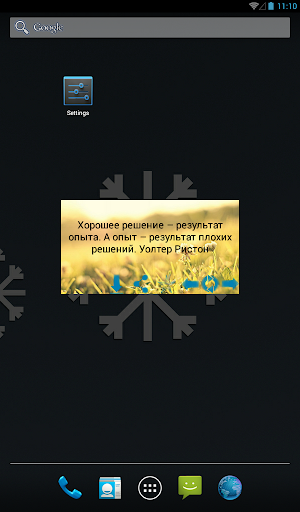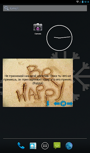 С помощью этого приложения (виджета), вы всегда будете иметь несколько мудрых высказываний (цитаты), чтобы поощрять и мотивировать вас, когда вам это нужно, сделать вас немного счастливее, ведь даже самые гениальные люди имели как и мы 24 часа в сутки. И самое главное, что вы имеете возможность добавить ваши самые любимые высказывания в список.Невозможно увидеть новые берега, не отплыв от старых. Будьте счастливы!!!!!!