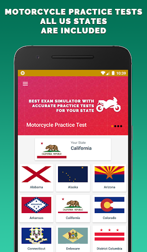 This app contains Motorcycle Practice Test for the following states: