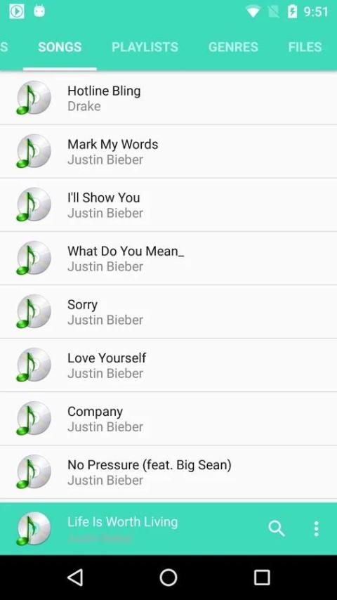 Список музыки по исполнителю, альбому, песни, плейлист, жанр и файл.