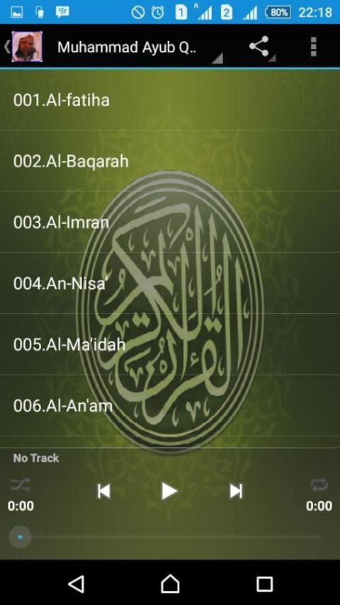 Мухаммад Аюб Коран MP3: Это приложение позволяет слушать декламации полного Корана шейхом Мухаммадом ибн Мухаммад Айюб Юсуфа на арабском языке в его очень хороший способ qira'a.You придется выбирать суру из списка воспроизведения и играть, чтобы слушать.