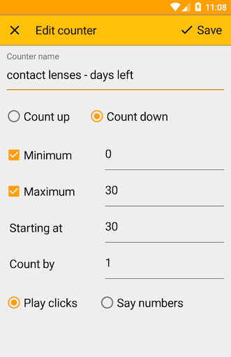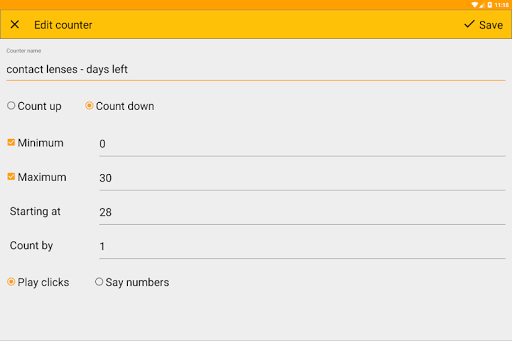 Установить именованные счетчики, которые подсчитывают или подсчитывают, с минимальными значениями / максимальными значениями, начальными значениями, регулируемыми шагами и выбором звуковых сигналов, речи или нет звука.