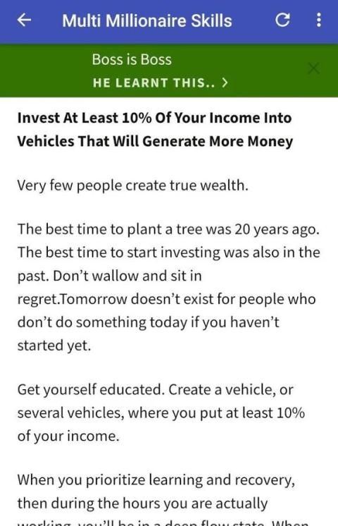 Примечание: Это приложение не курс о том, как стать миллионером за одну ночь. Кроме того, он не будет учить вас, как разбогатеть с нуля. Но если вы будете следовать принципам и применять его в своей повседневной жизни, это приведет вас, чтобы стать богатым.