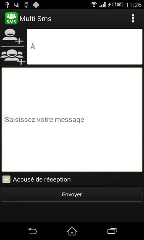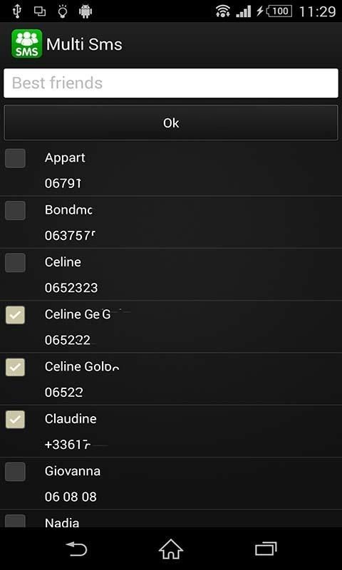 Multi SMS Sender: Send SMS to many contacts It's a free app that will save your live when you need to send SMS to more than one person. Features: Select contacts with a list Create Group gathering several contacts together Integrate sent messages in the main SMS app Delivery reports Totally Free and Easy to Use !