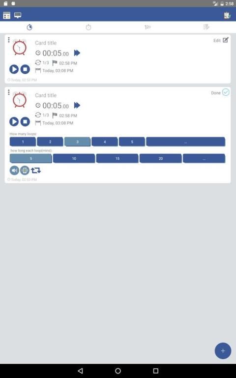 дизайн карты приложение. это так же, как Google в настоящее время или лента новостей facebook, каждая карта будет представлять собой таймер или секундомер, название каждой карты с вашей деятельности, приготовление пищи / спорт и т.д .. Каждая карта управляется независимо от других страниц или карты. она проста в использовании.