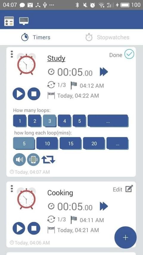 создать столько таймеров, сколько вам нужно, начните каждую карту самостоятельно, в то же время. каждая карта может быть удалена дублируется с помощью кнопки меню. Разделенные страницы для таймеров и секундомеров, добавить заголовок для каждой карты, чтобы сохранить все устроено.