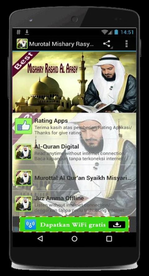 Мы обращаемся к главному официальному вебсайту для загрузки приложений. 10,000+ пользователи скачали последнюю версию Murotal Mishary Rasyid Alafasi в 9Apps бесплатно каждую неделю! Вы можете найти это многофункциональное приложение в 9Apps. Это горячее приложение было выпущено в 2016-03-24. Если вы любите его, просто скачиваете и пользуетесь им.