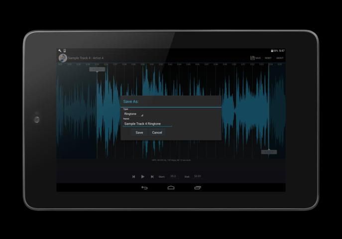 Это приложение основано на Ringdroid, который распространяется под лицензией Apache License версии 2.0 - https://www.apache.org/licenses/LICENSE-2.0