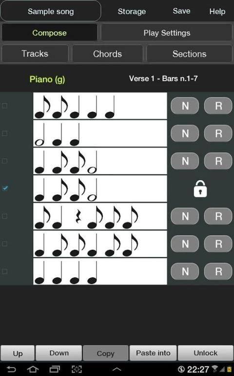 Она включает в себя пошаговый секвенсор для хитов барабана, редактор нотный для детального редактирования ноты, редактор ритм, чтобы опробовать различные варианты ритма. Кроме того, организовать свою песню на разделы и изменять и повторять их по своему желанию. Вы будете поражены тем, как быстро, легко и весело писать музыку может быть с этим приложением.
