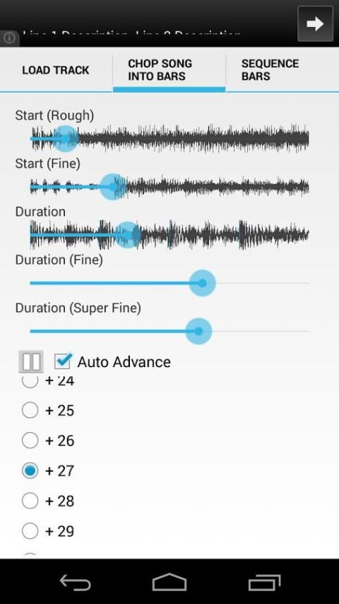 Это приложение работает Вами определение начального положения первого бара в треке, а затем продолжительность бар в треке. Вы можете играть в слитки обратно индивидуально на повторе, или их можно выбрать для воспроизведения в любом порядке.