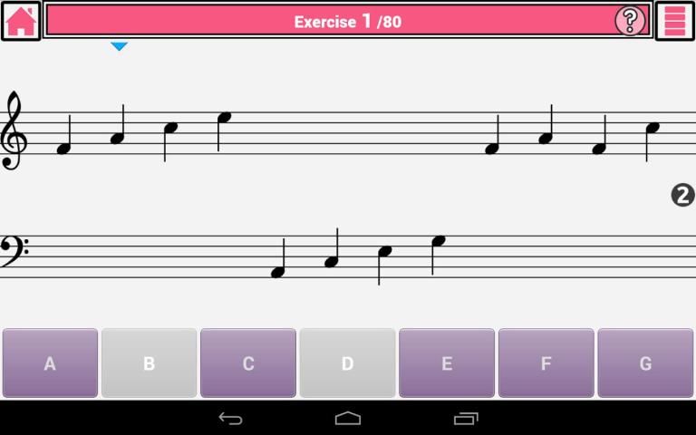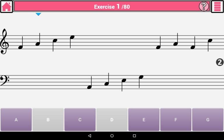 - Train over 160 sight reading exercises in clefs G, F, C4, C3 and G+F.