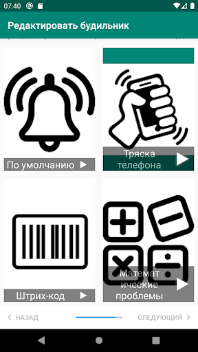 * Чтобы прекратить тревогу, нужно сделать какое-то действие. Или трясти телефон несколько раз, решать математические задачи или снимать штрих-код.
