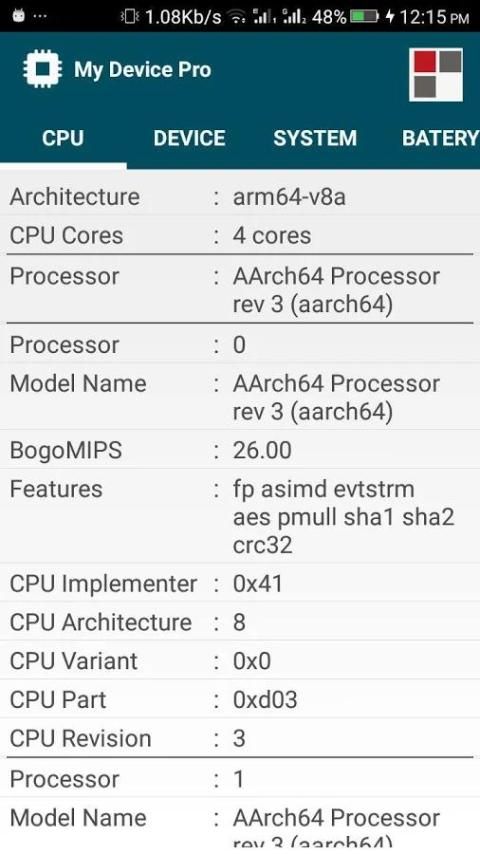 MyDevice Pro (Syteminfo) - Приложение отображает наиболее важные аппаратные ресурсы смартфонов, используемых.