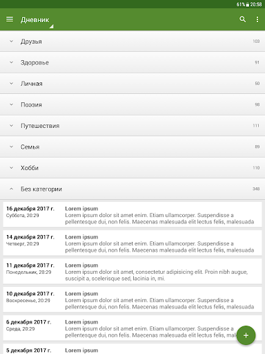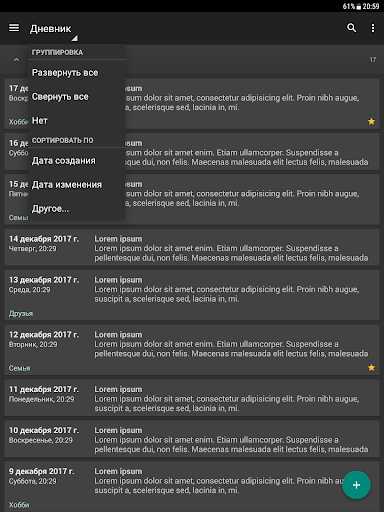 - Сортировка записи в дневнике по дате создания, дате обновленния, названии и категория